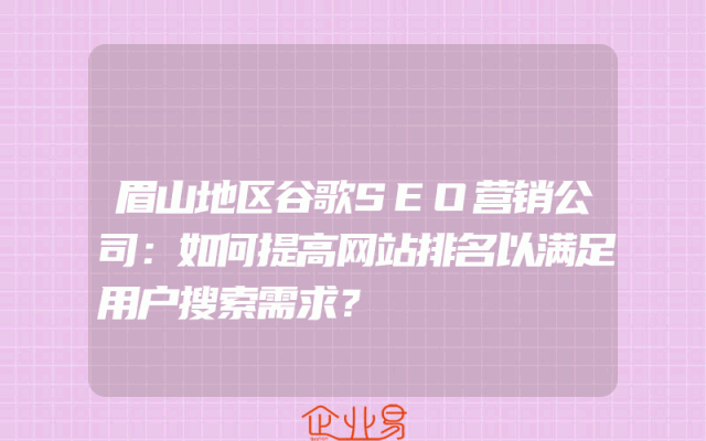 - 眉山地区谷歌SEO营销公司:如何提高网站排名以满足用户搜索需求?