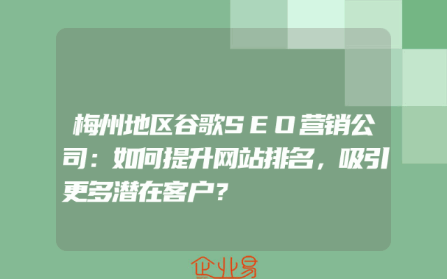 - 梅州地区谷歌SEO营销公司:如何提升网站排名,吸引更多潜在客户?