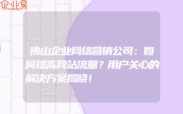 - 佛山企业网络营销公司:如何提高网站流量?用户关心的解决方案揭晓!