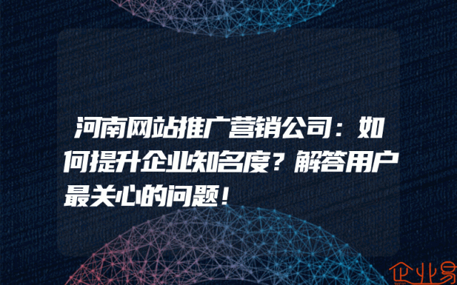 - 河南网站推广营销公司:如何提升企业知名度?解答用户最关心的问题!