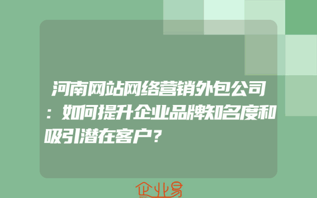 - 河南网站网络营销外包公司:如何提升企业品牌知名度和吸引潜在客户?