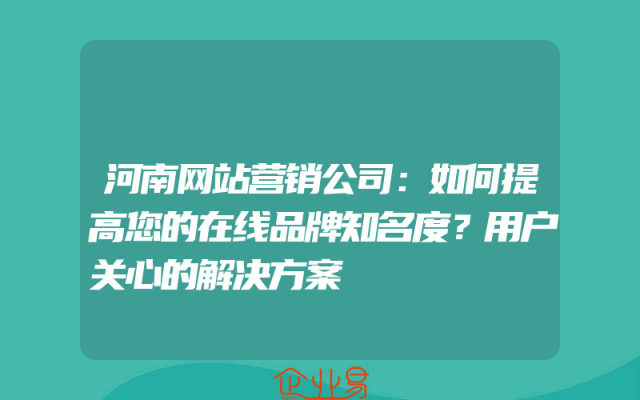 - 河南网站营销公司:如何提高您的在线品牌知名度?用户关心的解决方案