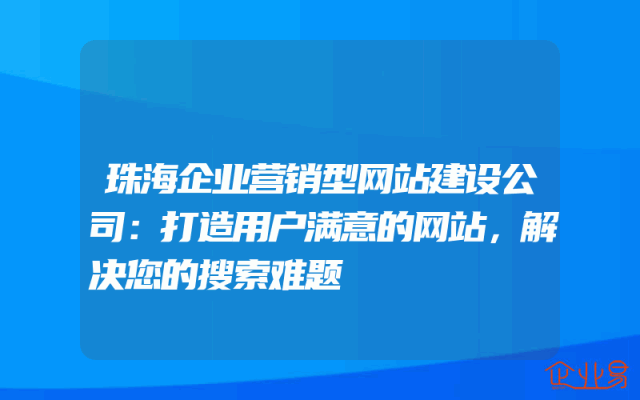 - 珠海企业营销型网站建设公司:打造用户满意的网站,解决您的搜索难题