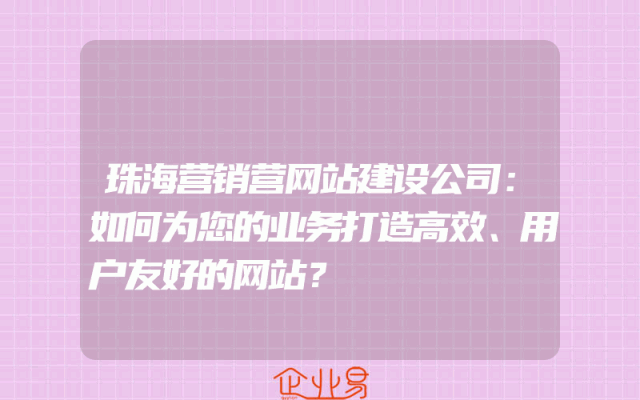- 珠海营销营网站建设公司:如何为您的业务打造高效、用户友好的网站?