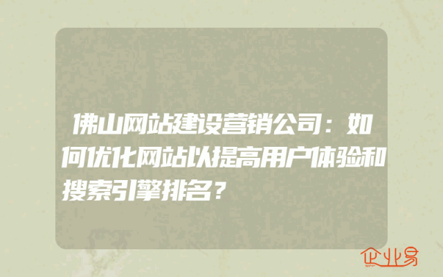 - 佛山网站建设营销公司:如何优化网站以提高用户体验和搜索引擎排名?