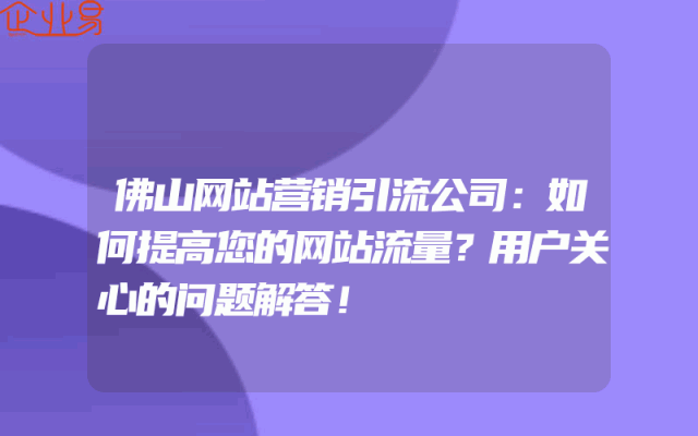 - 佛山网站营销引流公司:如何提高您的网站流量?用户关心的问题解答!