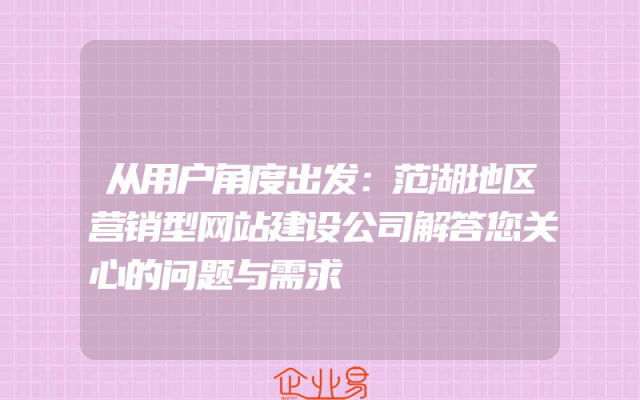 - 从用户角度出发:范湖地区营销型网站建设公司解答您关心的问题与需求