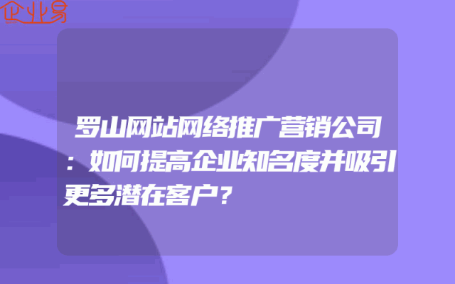 - 罗山网站网络推广营销公司:如何提高企业知名度并吸引更多潜在客户?