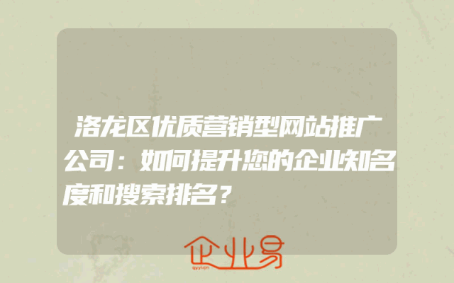 - 洛龙区优质营销型网站推广公司:如何提升您的企业知名度和搜索排名?