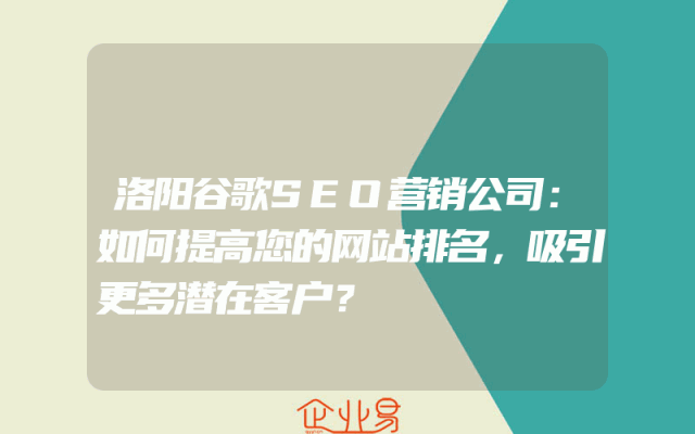 - 洛阳谷歌SEO营销公司:如何提高您的网站排名,吸引更多潜在客户?