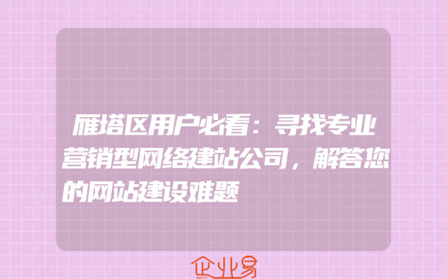 - 雁塔区用户必看:寻找专业营销型网络建站公司,解答您的网站建设难题