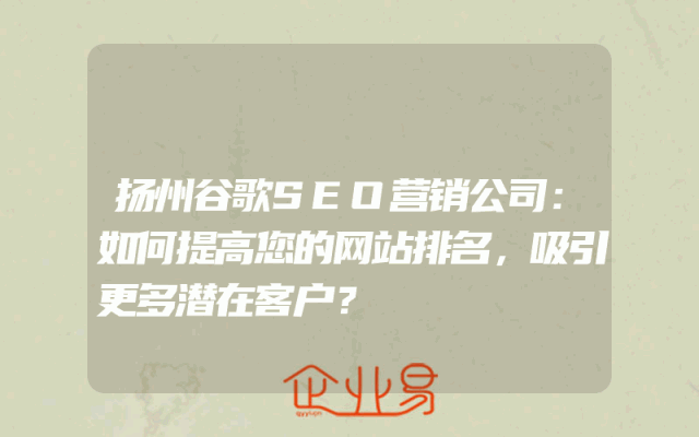 - 扬州谷歌SEO营销公司:如何提高您的网站排名,吸引更多潜在客户?