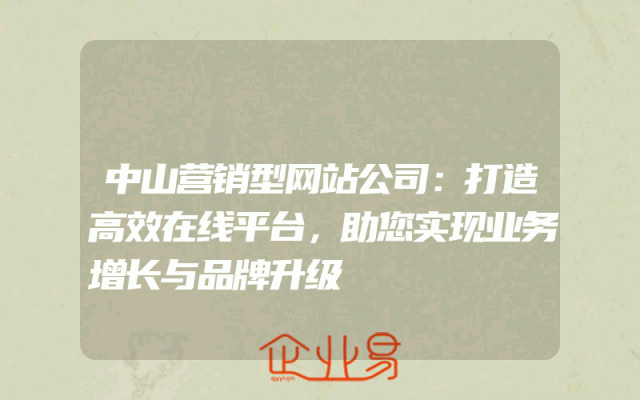 - 中山营销型网站公司:打造高效在线平台,助您实现业务增长与品牌升级
