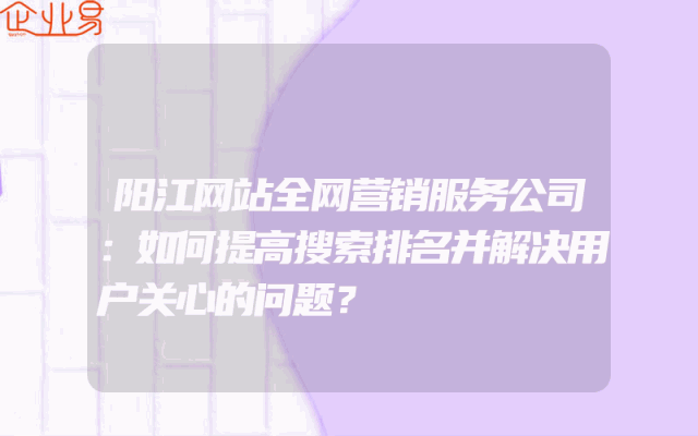 - 阳江网站全网营销服务公司:如何提高搜索排名并解决用户关心的问题?
