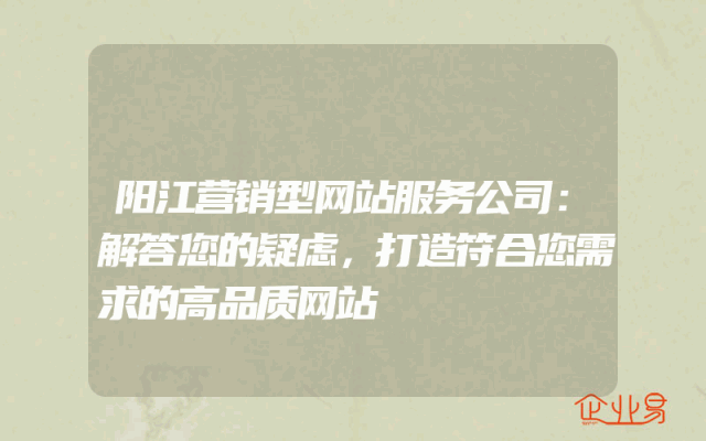 - 阳江营销型网站服务公司:解答您的疑虑,打造符合您需求的高品质网站