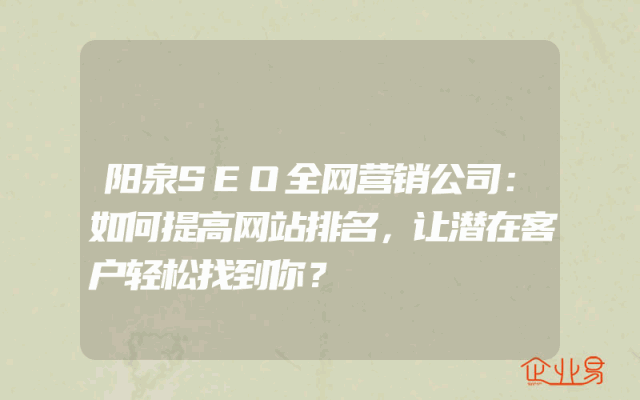 - 阳泉SEO全网营销公司:如何提高网站排名,让潜在客户轻松找到你?