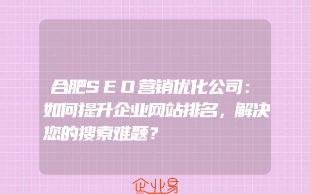 - 合肥SEO营销优化公司:如何提升企业网站排名,解决您的搜索难题?