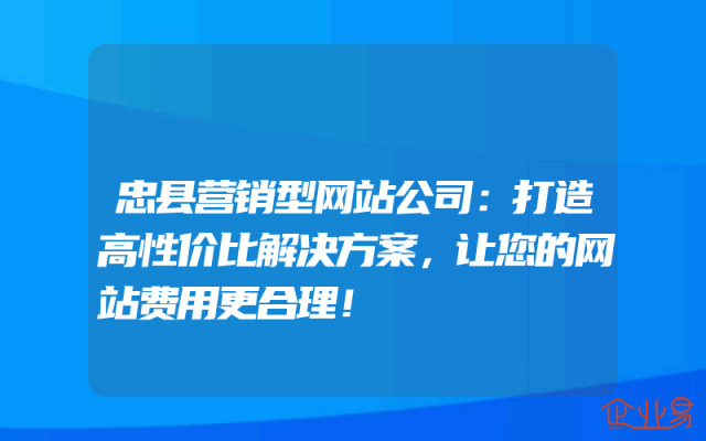 - 忠县营销型网站公司:打造高性价比解决方案,让您的网站费用更合理!