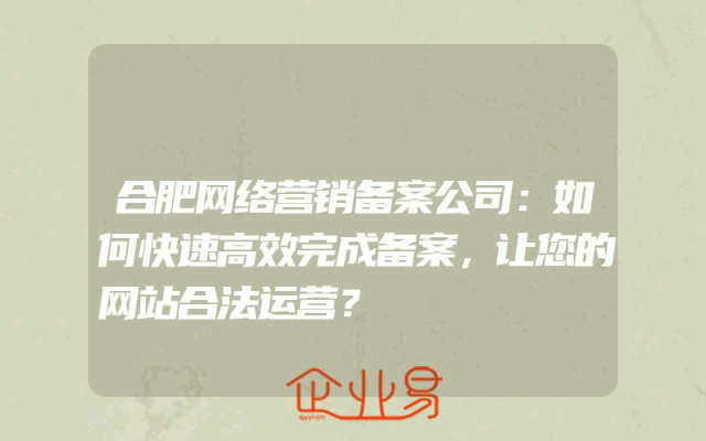 - 合肥网络营销备案公司:如何快速高效完成备案,让您的网站合法运营?在互联网时代,网站建设已经成为企业发展的重要组成部分。然而,要想让网站正常运营,必须先进行网络营销备案。本文将为您介绍如何通过合肥网络营销备案公司,快速高效地完成备案,让您的网