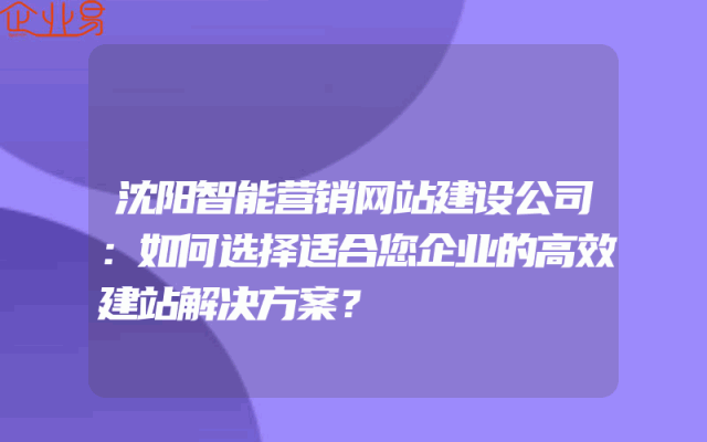 - 沈阳智能营销网站建设公司:如何选择适合您企业的高效建站解决方案?