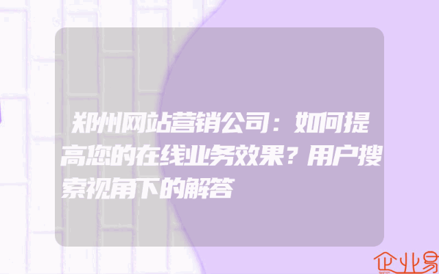 - 郑州网站营销公司:如何提高您的在线业务效果?用户搜索视角下的解答