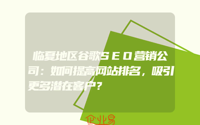 - 临夏地区谷歌SEO营销公司:如何提高网站排名,吸引更多潜在客户?