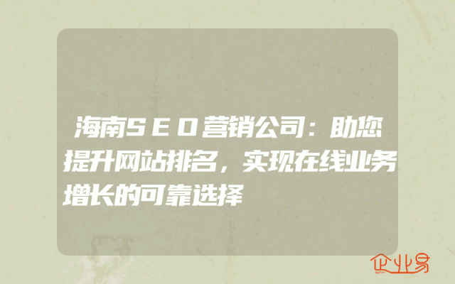 - 海南SEO营销公司:助您提升网站排名,实现在线业务增长的可靠选择