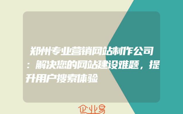 - 郑州专业营销网站制作公司:解决您的网站建设难题,提升用户搜索体验
