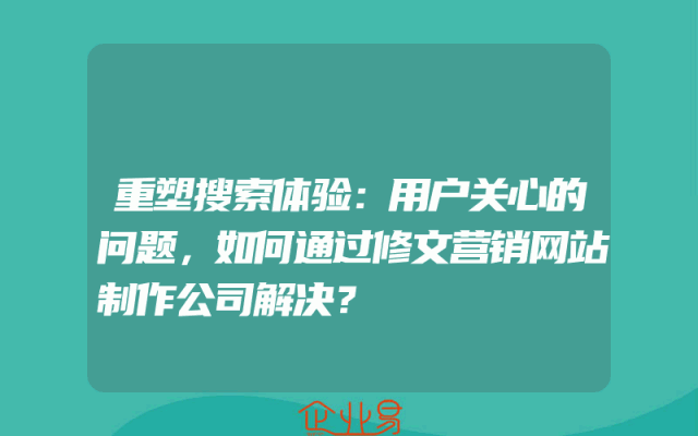 - 重塑搜索体验:用户关心的问题,如何通过修文营销网站制作公司解决?
