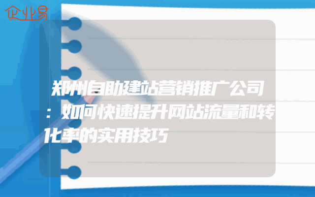 - 郑州自助建站营销推广公司:如何快速提升网站流量和转化率的实用技巧