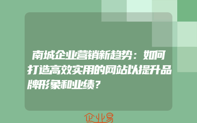 - 南城企业营销新趋势:如何打造高效实用的网站以提升品牌形象和业绩?