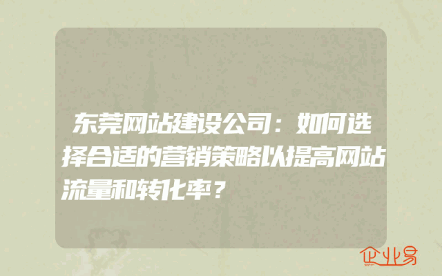 - 东莞网站建设公司:如何选择合适的营销策略以提高网站流量和转化率?