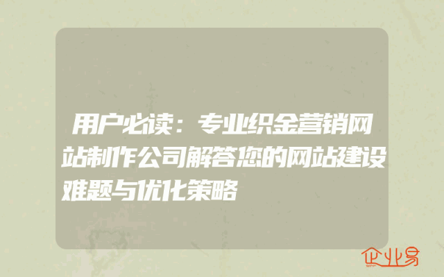 - 用户必读:专业织金营销网站制作公司解答您的网站建设难题与优化策略