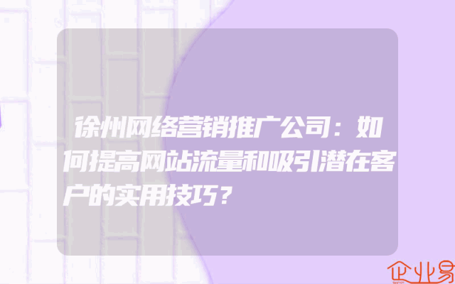 - 徐州网络营销推广公司:如何提高网站流量和吸引潜在客户的实用技巧?
