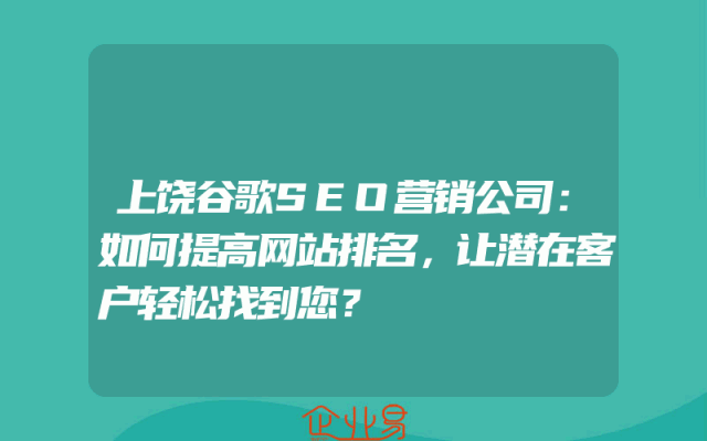 - 上饶谷歌SEO营销公司:如何提高网站排名,让潜在客户轻松找到您?