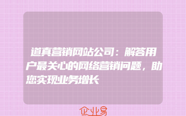 - 道真营销网站公司:解答用户最关心的网络营销问题,助您实现业务增长