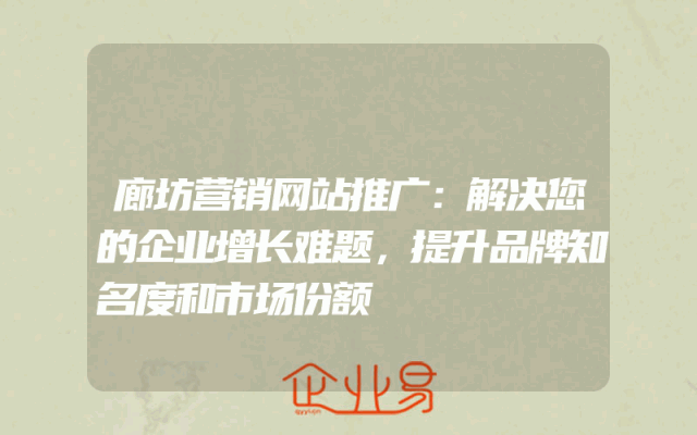 - 廊坊营销网站推广:解决您的企业增长难题,提升品牌知名度和市场份额