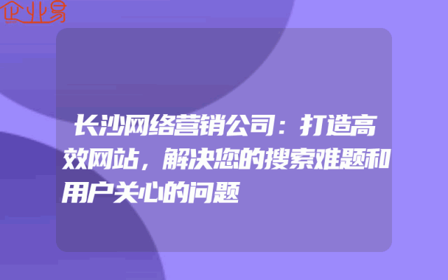 - 长沙网络营销公司:打造高效网站,解决您的搜索难题和用户关心的问题