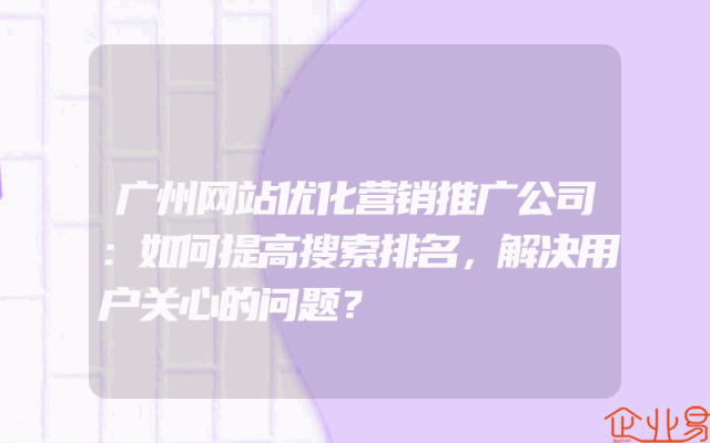 - 广州网站优化营销推广公司:如何提高搜索排名,解决用户关心的问题?