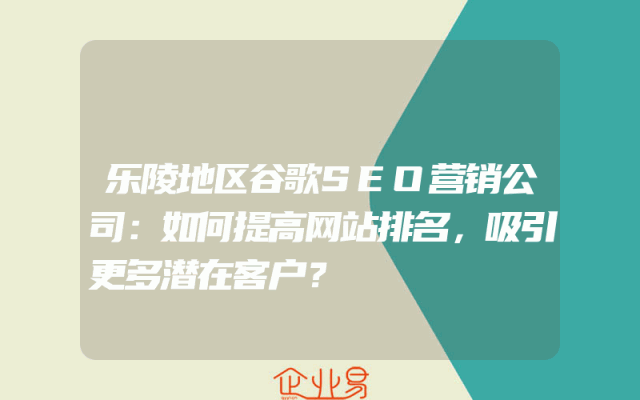 - 乐陵地区谷歌SEO营销公司:如何提高网站排名,吸引更多潜在客户?