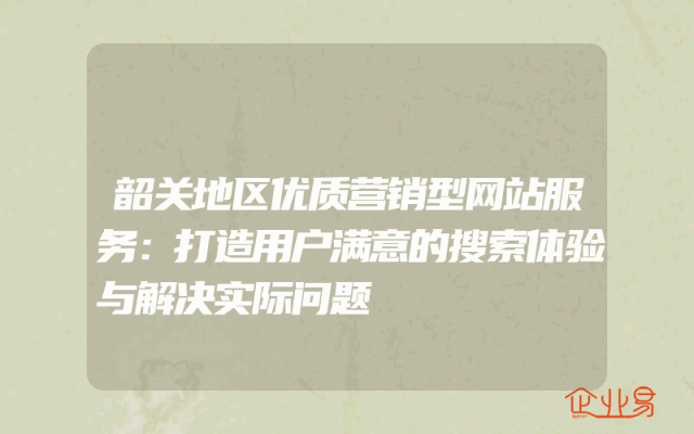 - 韶关地区优质营销型网站服务:打造用户满意的搜索体验与解决实际问题