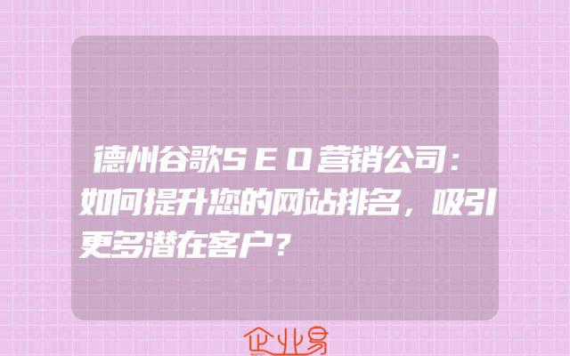 - 德州谷歌SEO营销公司:如何提升您的网站排名,吸引更多潜在客户?