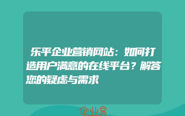 - 乐平企业营销网站:如何打造用户满意的在线平台?解答您的疑虑与需求
