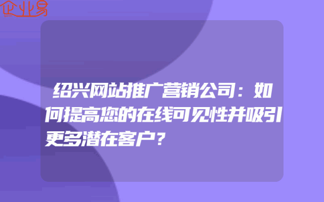 - 绍兴网站推广营销公司:如何提高您的在线可见性并吸引更多潜在客户?