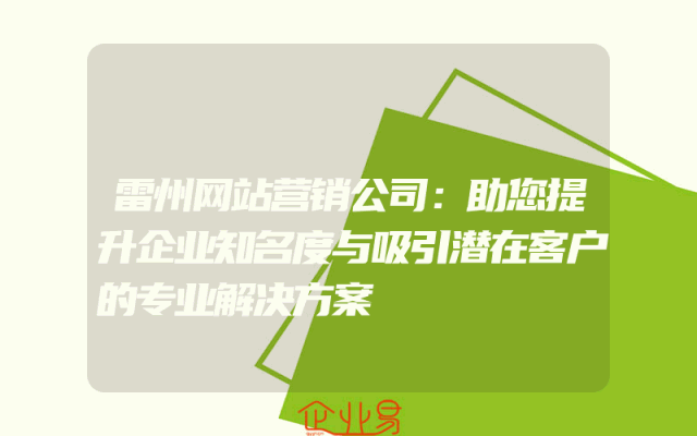 - 雷州网站营销公司:助您提升企业知名度与吸引潜在客户的专业解决方案