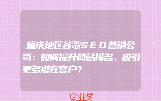 - 肇庆地区谷歌SEO营销公司:如何提升网站排名,吸引更多潜在客户?