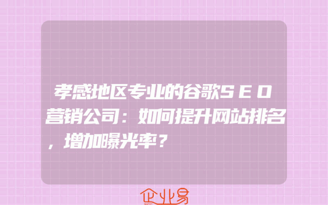 - 孝感地区专业的谷歌SEO营销公司:如何提升网站排名,增加曝光率?