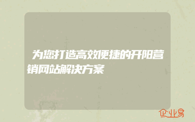 - 为您打造高效便捷的开阳营销网站解决方案:用户关心的问题一网打尽!随着互联网的快速发展,企业营销网站已经成为了企业展示形象、宣传产品和服务的重要平台。然而,如何打造一个既高效又便捷的营销网站,以满足用户的各种需求,成为了众多企业面临的挑战。本
