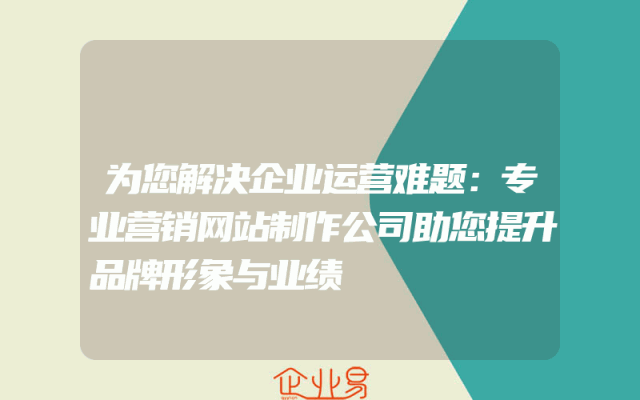 - 为您解决企业运营难题:专业营销网站制作公司助您提升品牌形象与业绩