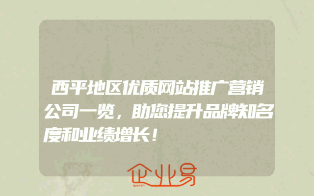 - 西平地区优质网站推广营销公司一览,助您提升品牌知名度和业绩增长!